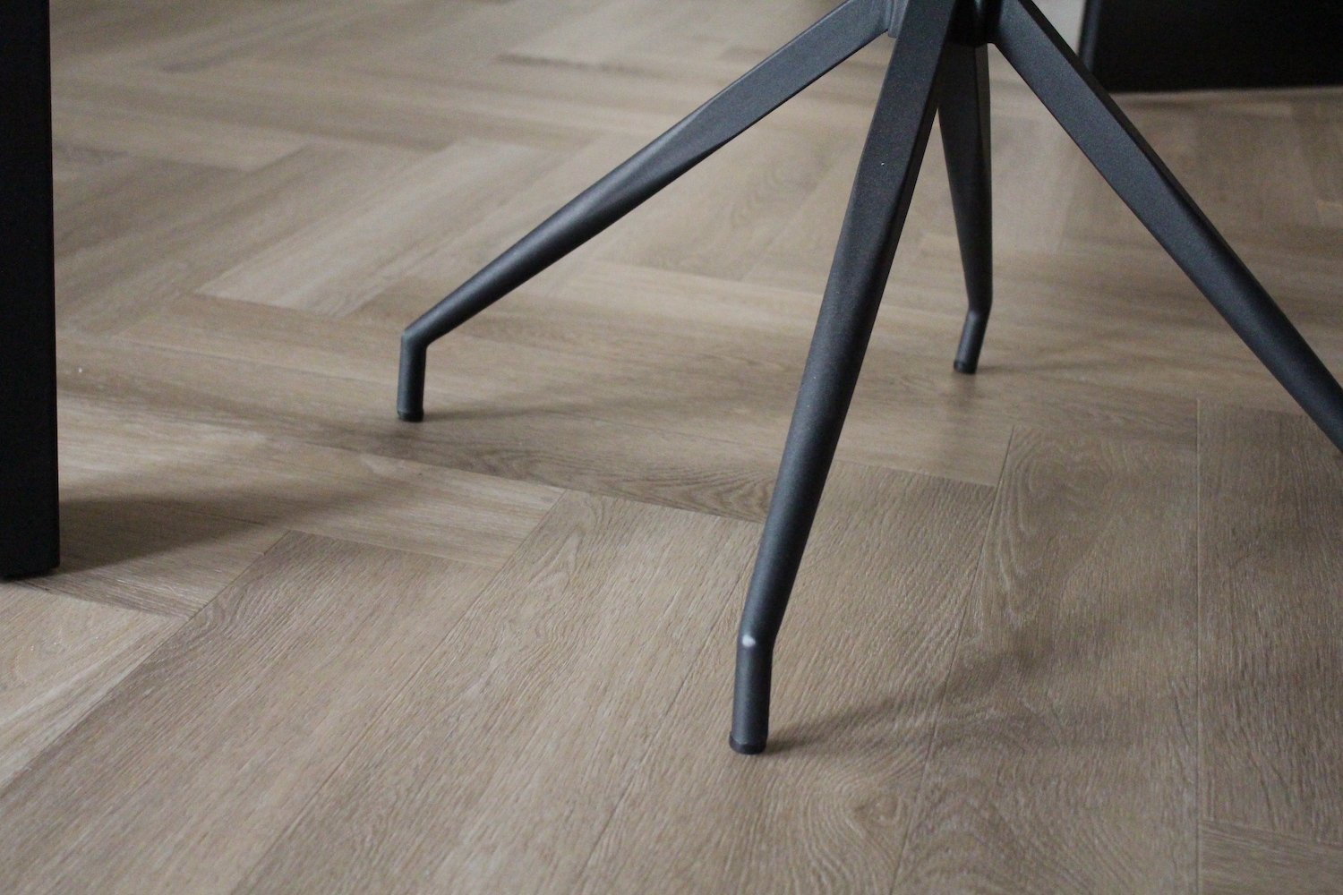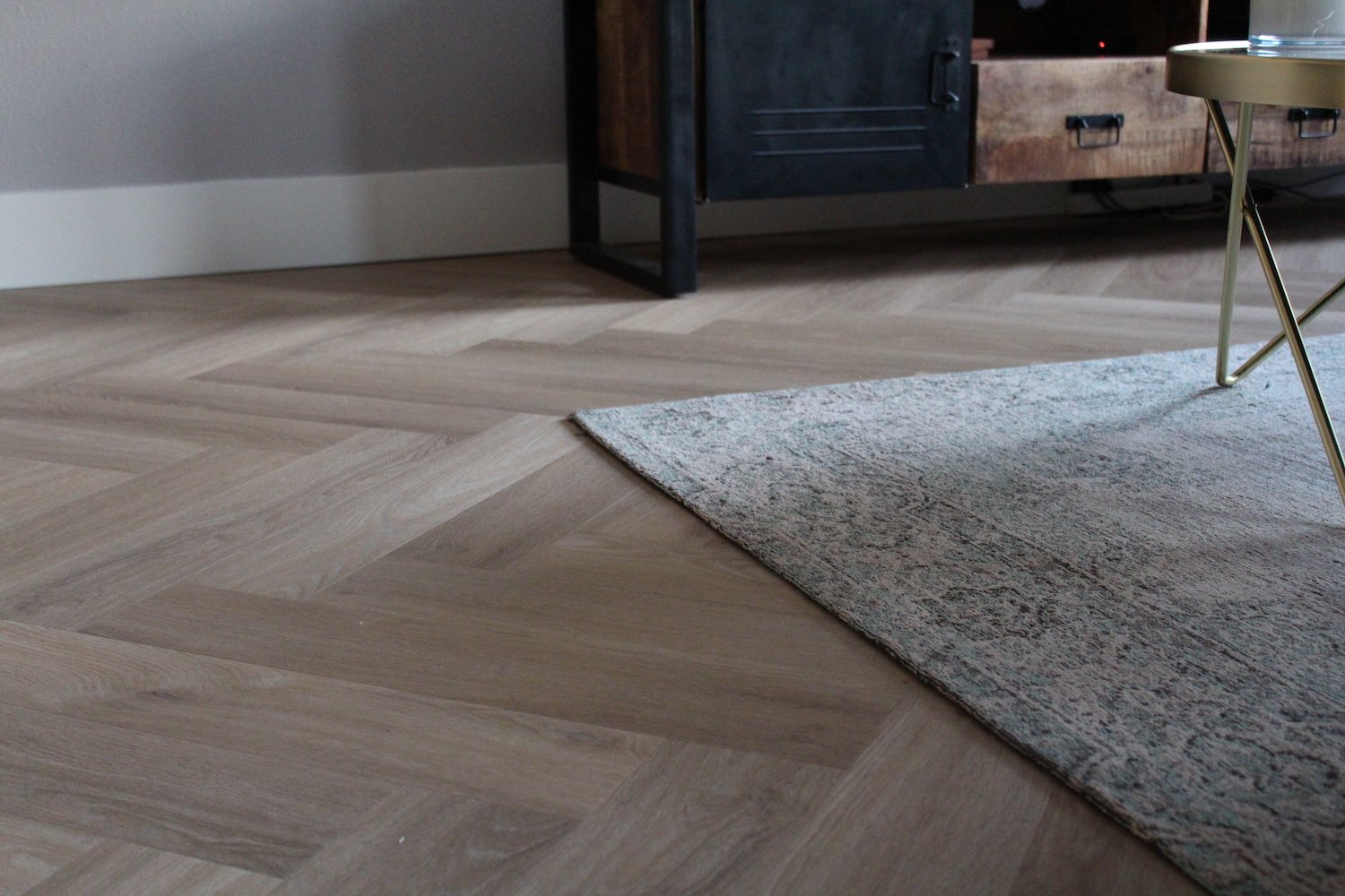 De keuze is zo gevallen op een visgraat PVC-vloer. “Het moest warmte uitstralen en tegelijk chique en praktisch zijn”, vertelt Daisy. Om de warmte te creëren heeft Daisy gekozen voor de LifeStyle plak pvc collectie in de Naturel uitvoering. Een zacht-eiken afwerking, die wordt gecomplimenteerd door industrieel meubilair en grijze en houten tinten.