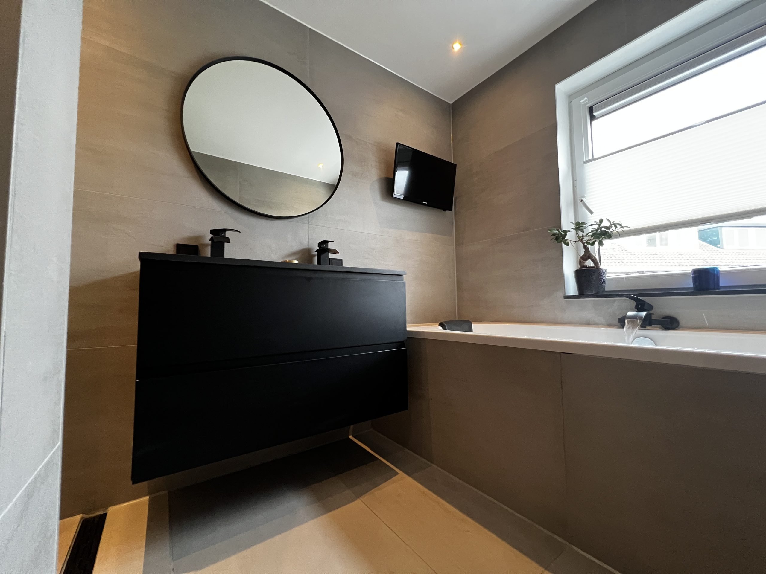Ze kozen er echter voor om het bad niet zwart te maken, wat een persoonlijke keuze was. Het bubbelbad was echter wel belangrijk voor hen, omdat ze er veel tijd in doorbrengen. De tv boven het bad maakt het eindresultaat helemaal compleet!