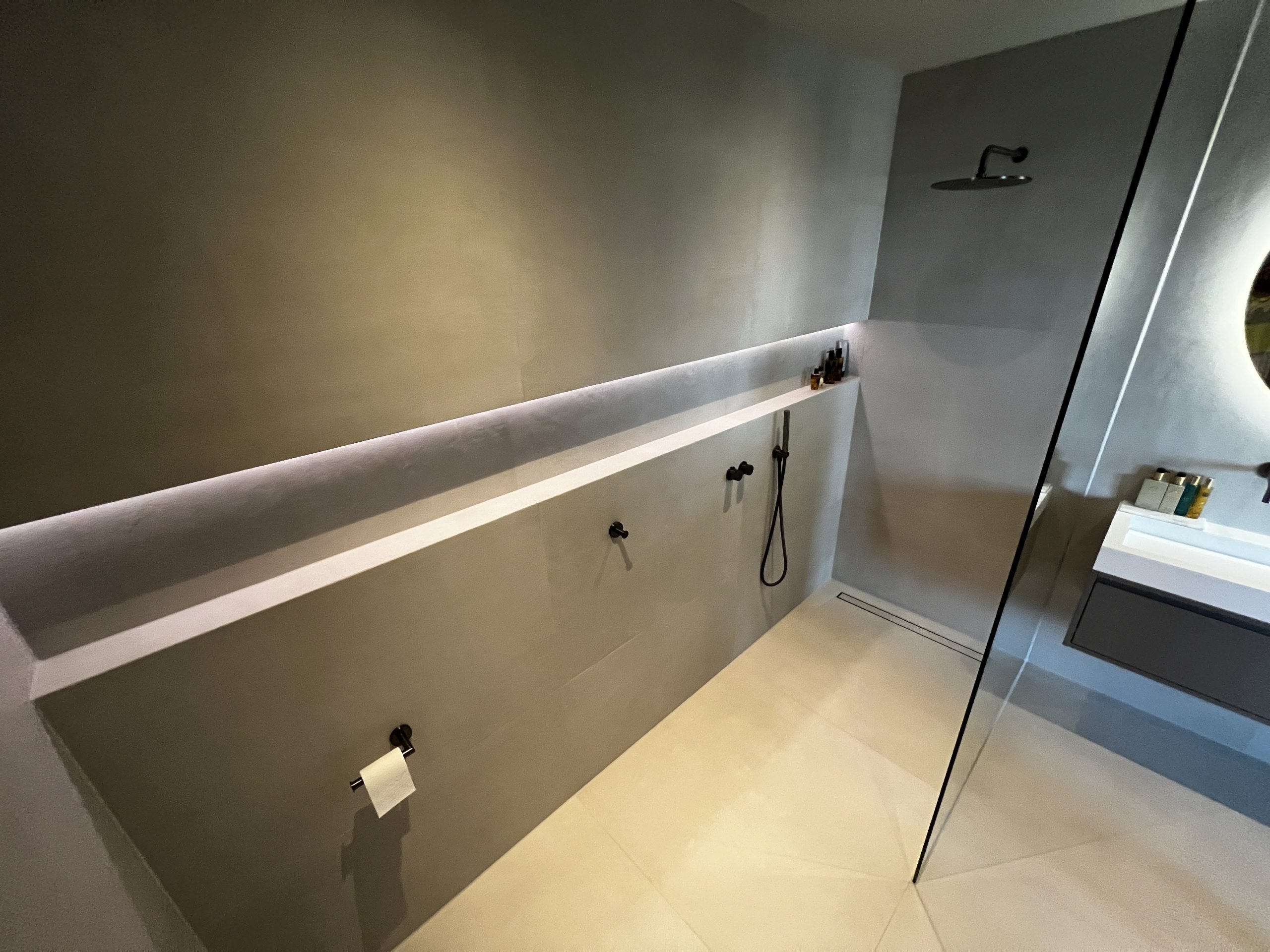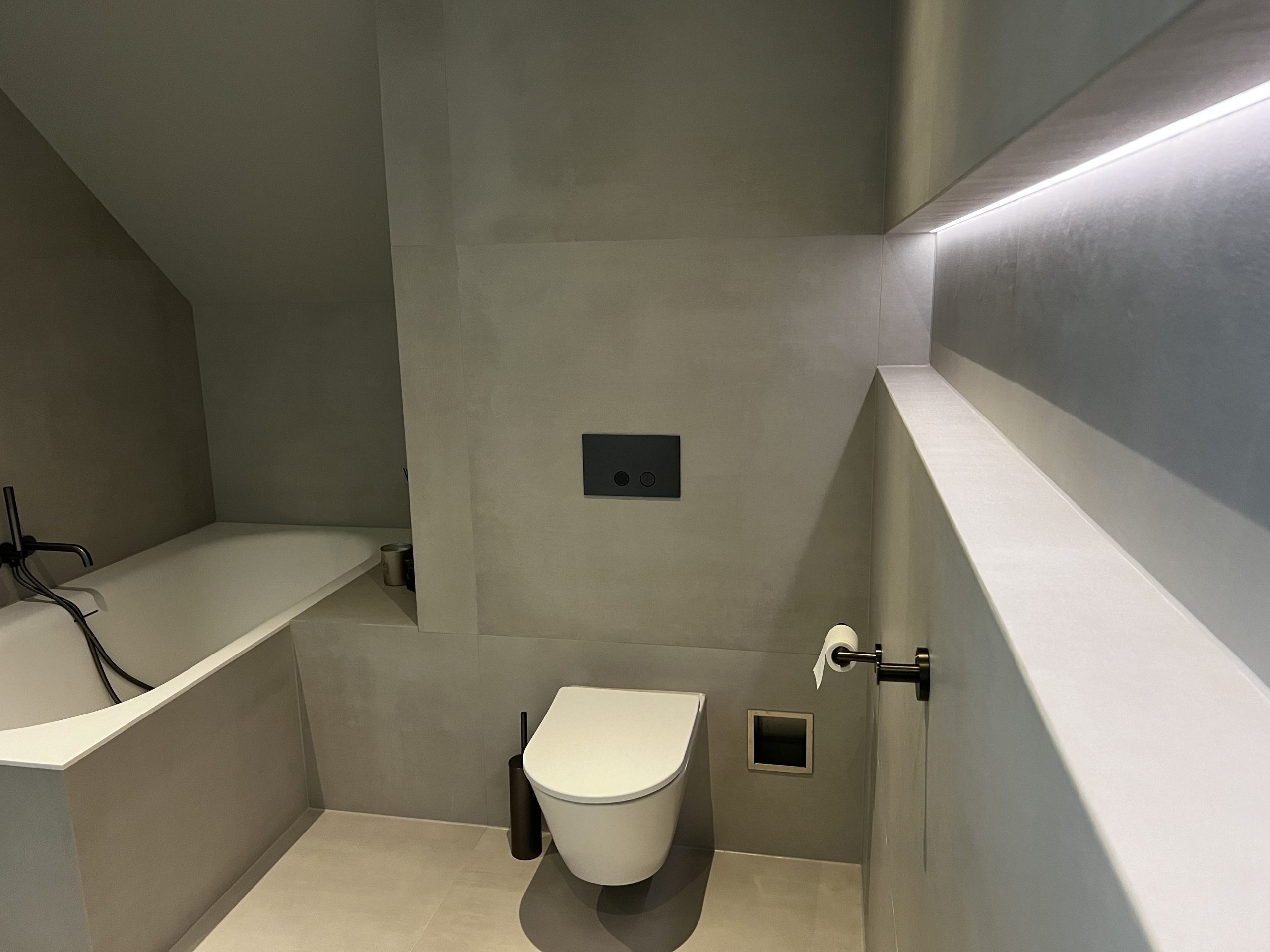 Verfijnde en industriële badkamer make-over met betonlook