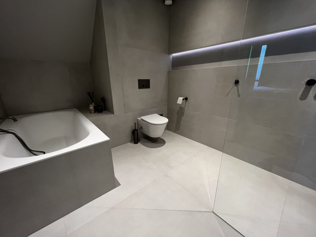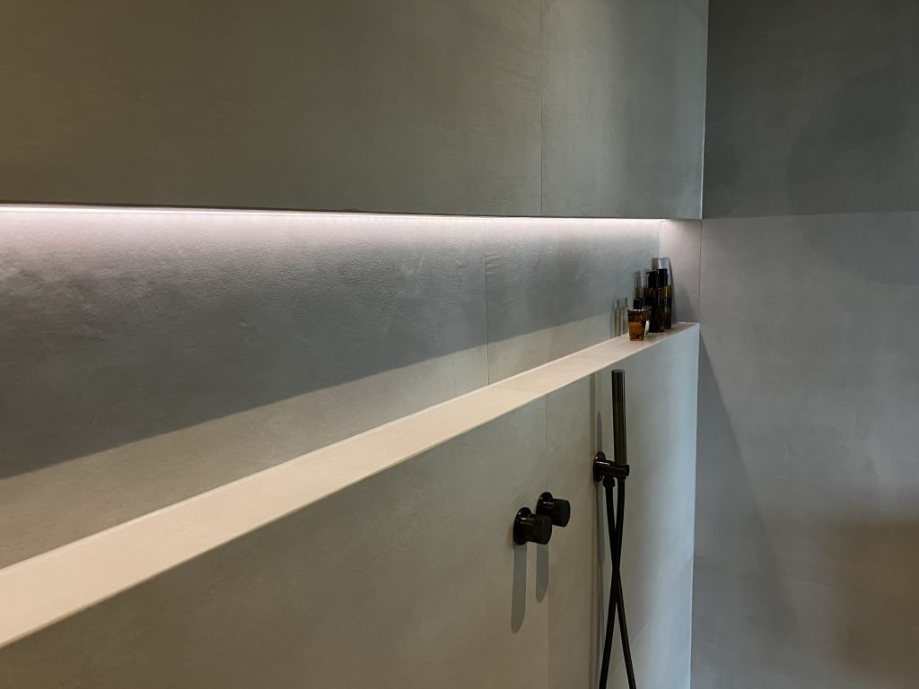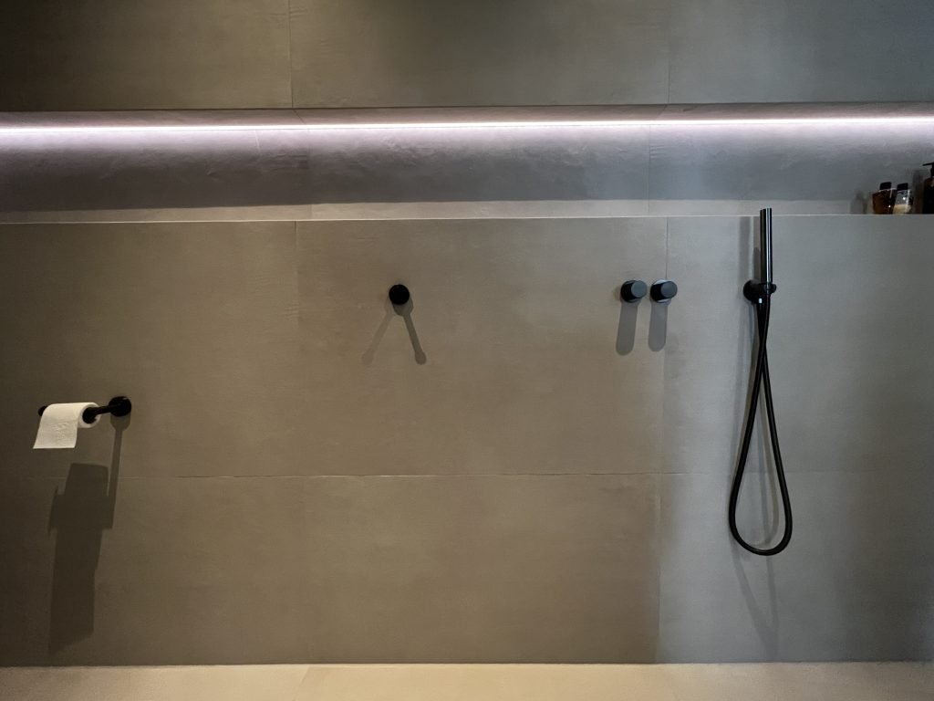 Het proces begon dan ook logischerwijs met inspiratie opdoen. “We hebben eerst de verschillende opties naast elkaar gezet: van tegels, tot een PVC-vloer met stuc wanden. De keuze viel uiteindelijk op keramische tegels, omdat dit toch de meest duurzame oplossing is.”